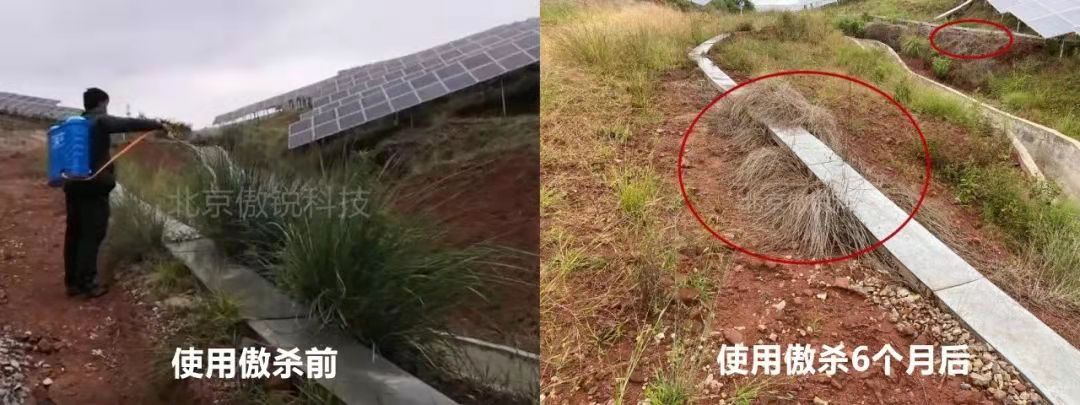 傲銳科技相關負責人介紹,與農用場合相比,光伏等工業場合的雜草更為復雜。如果單獨使用各種除草劑,總會表現出一定的局限性。同時,一些除草劑單劑品種大面積地使用,會致使很多雜草產生抗藥性,除草效果下降。他強調,“傲殺”系列工業除草劑基于復合配方技術將多種有效成分科學復配,并輔之以專業的“量身配藥”及科學應用技術指導,在鐵路、公路、光伏等工業領域均取得了優異的效果,除草成本還能下降50%左右,堪稱是復配型除草技術的典范。