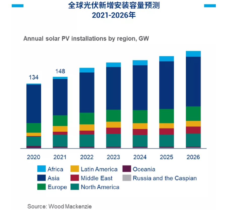移動版:伍德麥肯茲 | 預計2021年全球光伏新增安裝容量實現148GW,同比增長11%