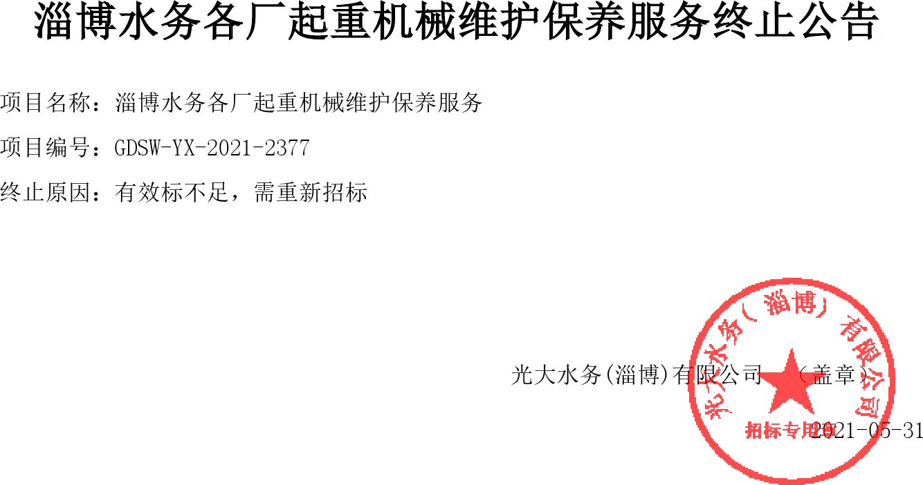 移動版:山東:淄博水務各廠起重機械維護保養服務終止公告