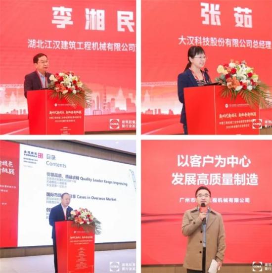 在“新時代﹒新特點﹒新機(jī)遇﹒新應(yīng)戰(zhàn)”工作翻開論壇環(huán)節(jié),浙江省制造機(jī)械集團(tuán)有限公司董事長許惠銘、撫順永茂建筑機(jī)械有限公司副總經(jīng)理李子陸、大漢科技股份有限公司總經(jīng)理張茹、湖北江漢建筑工程機(jī)械有限公司董事長李湘民以及廣州市特威工程機(jī)械有限公司副總經(jīng)理蔣錦富先后做了溝通說話。