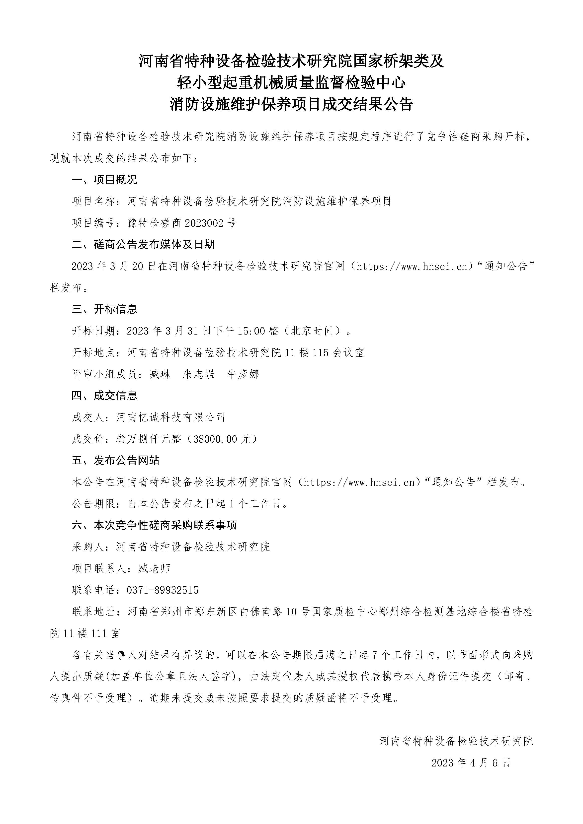 移動版:起重機(jī)械質(zhì)量監(jiān)督檢驗中心消防設(shè)施維護(hù)保養(yǎng)項目結(jié)果公告