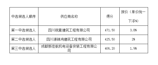 1.根據(jù)綜合評分法,我單位確定四川銳意建筑工程有限公司成為本次采購項目的中選供應(yīng)商。