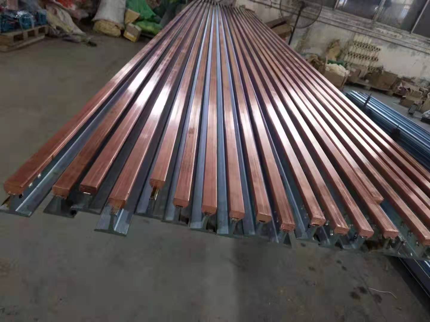 QYT系列高溫剛體滑觸線是由導(dǎo)電銅軌和燕尾式輕軌構(gòu)成的,優(yōu)良的嵌裝工藝保證二者之間的緊密結(jié)合,用高強(qiáng)度專用絕緣子支撐,安裝或焊裝在道軌梁的支架上,導(dǎo)電銅軌選用**電解銅,通過(guò)電熱擠軋的方式,由專用軋機(jī)逐次逼近一次性軋制成形,與作為載體的燕尾式輕軌緊密嵌裝,提高滑線的強(qiáng)度、鋼度和使用壽命。