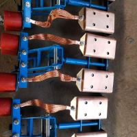 集電器滑觸線系統(tǒng)中集電側(cè)拾取電能的主要裝置,它通過(guò)集電刷與導(dǎo)軌的滑動(dòng)接觸,將電能直接傳導(dǎo)至用電器,從而實(shí)現(xiàn)系統(tǒng)的移動(dòng)供電。集電器由機(jī)械結(jié)構(gòu)的張力裝置和直接與導(dǎo)軌滑動(dòng)接觸的集電刷兩部分組成。